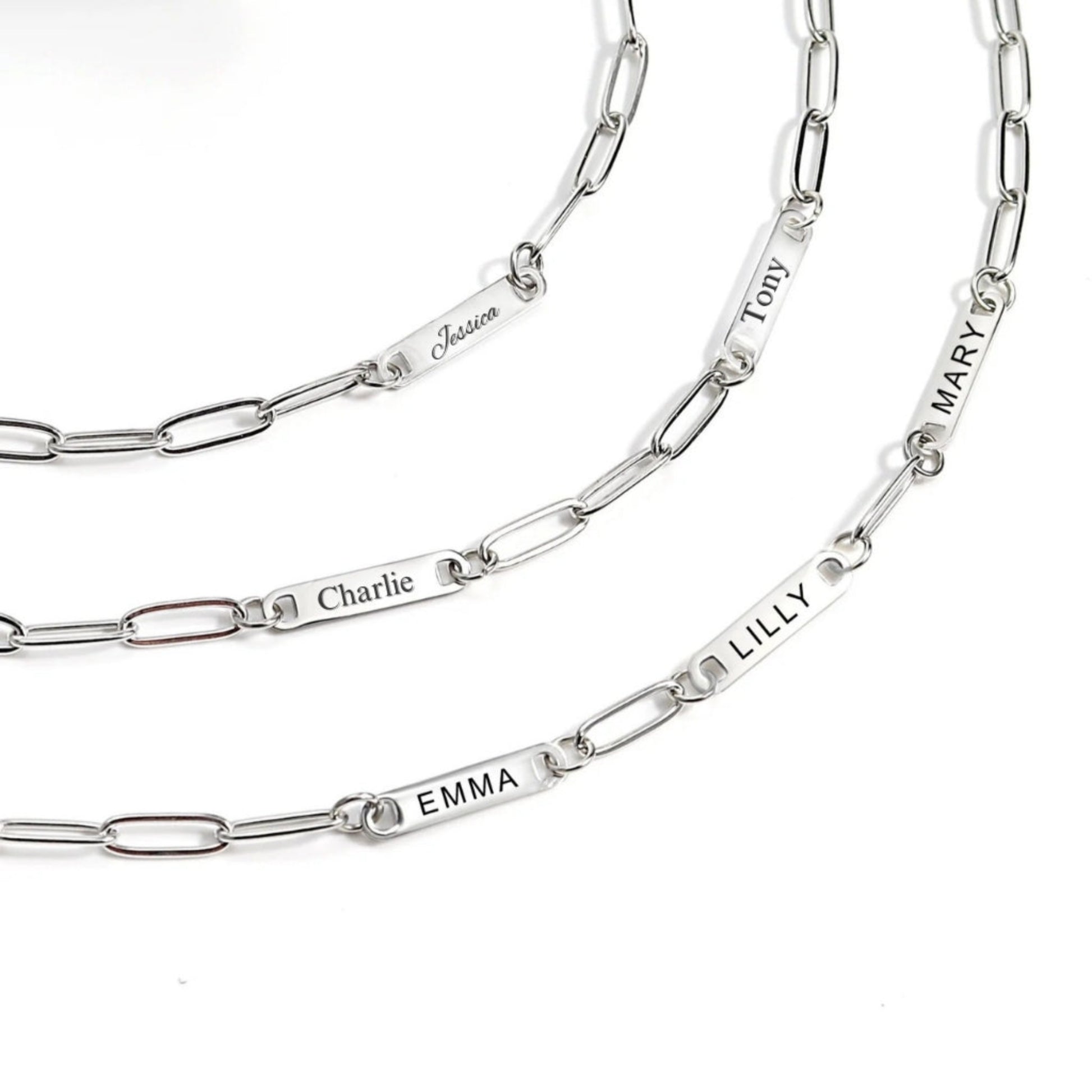 Engraved Jewelry (316L stainless steel) — waterproof, hypoallergenic, and made for daily wear.
