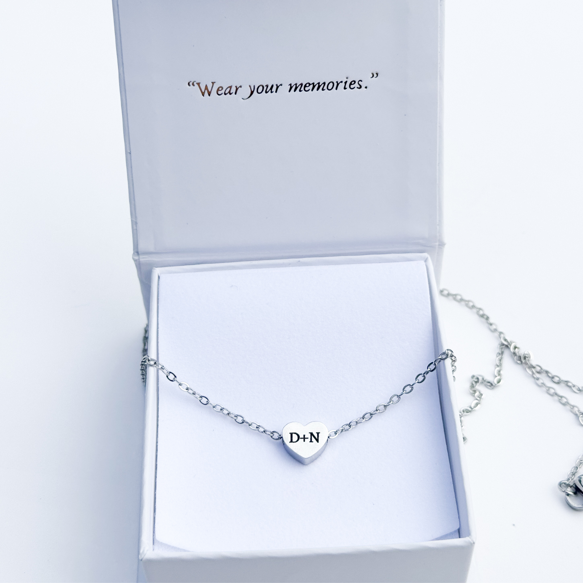 Engraved Jewelry (316L stainless steel) — waterproof, hypoallergenic, and made for daily wear.